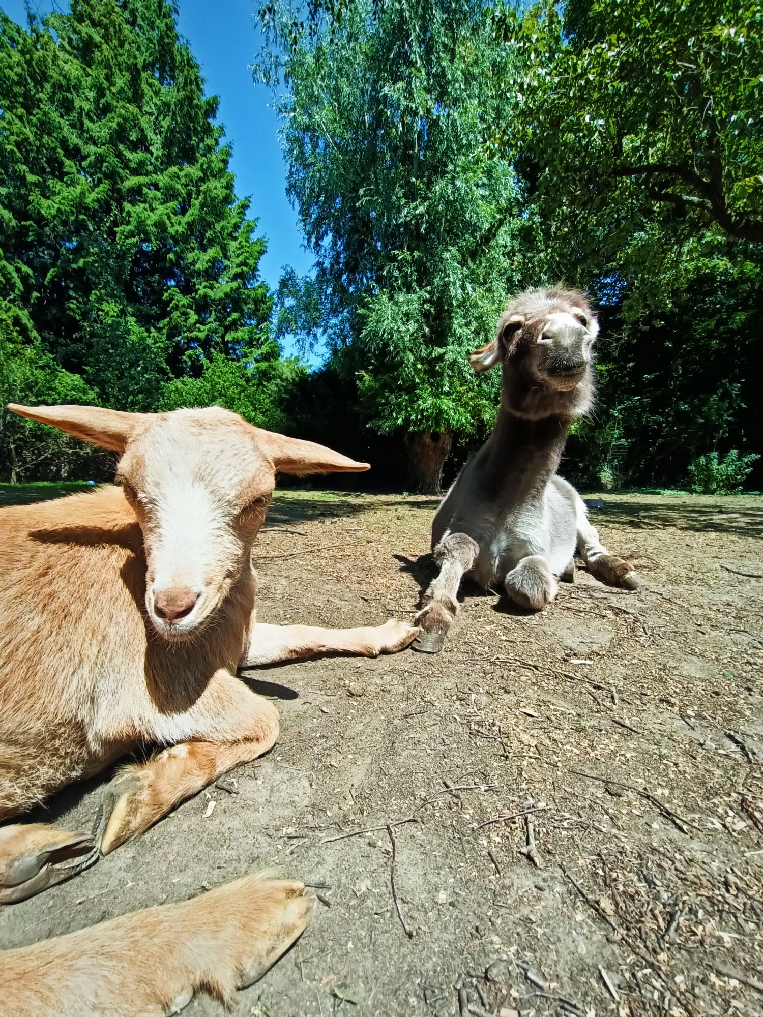 Simba, notre mini-bouc, Kinder & Kitty, nos poneys Shetland, Kif-Kif et Nesquik, nos ânes miniatures, ont hâte de vous rencontrer !